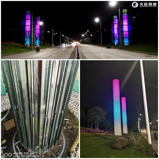 瀏覽:-光臣此次項(xiàng)目是常洪隧道口兩側(cè)廢棄立柱的亮化提升,在綠化帶旁“光禿禿”地矗立著四根柱子,顯得有些突兀。由于常洪隧道道路運(yùn)行性質(zhì)發(fā)生變化,隧道原收費(fèi)亭及頂棚失去原有功能,限制車道寬度,影響交通便利。為了做好隧道周邊環(huán)境綜合治理,進(jìn)一步提升隧道交通便利,2018年寧波市城管市政部門正式對(duì)收費(fèi)亭及頂棚進(jìn)行拆除。但拆除后留存的立柱顯得不太美觀。