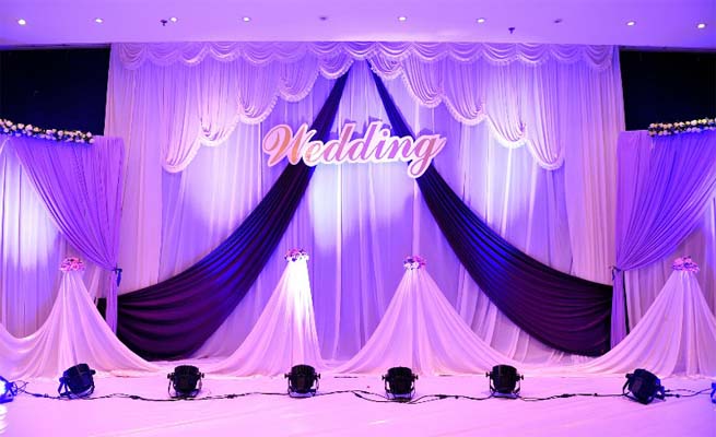 在布燈時(shí),我們需要考慮留影區(qū)會(huì)聚集一對(duì)新人和親朋好友,燈光布置需要從兩傾往中間位置聚光,或者平行、間距布光。LED投光燈安裝時(shí),燈光從下往上投射。這樣的方式有一個(gè)非常好的效果就是能夠把現(xiàn)場(chǎng)空間感擴(kuò)大。