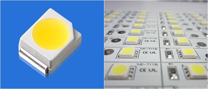 2.如果是貼片的話,如5050貼片,四個角中,有一個是有個缺角的,就是負極,對面就是正極了。