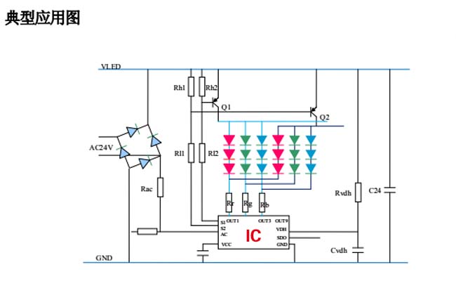 六段內(nèi)控護(hù)欄管通過驅(qū)動(dòng)芯片(IC)控制,其輸入電源在12V到24V之間,可承受30V端口電壓,通過1/2掃描開關(guān)端口構(gòu)成18個(gè)通道顯示模式。工作時(shí)可以實(shí)現(xiàn)整體同步控制。