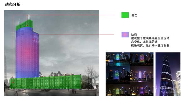 為打造一個動靜皆宜的威海國亭大廈,設(shè)計師把亮化方案分為幾個部份,玻璃幕墻立面呈現(xiàn)動態(tài)變化,尤其滿足遠視角觀賞,吸引路人駐足觀看的效果。