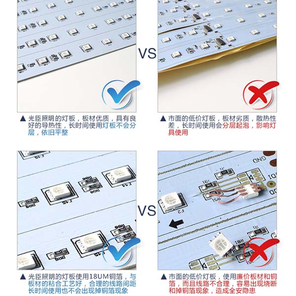 針對(duì)PCB板材的材質(zhì)來(lái)分析,PCB板也有分很多種質(zhì)量層次,市面上大部份廉價(jià)的線條燈選用的是二次料的PCB板材,這種板材在受熱后容易分層、銅箔太薄容易掉、粘合性不好銅箔層和PCB板層容易分開,更不用說(shuō)線路穩(wěn)定性如何,板材都這樣還指望線路是穩(wěn)定的嗎?別開玩笑了,大家都很忙!大多數(shù)便宜的線條燈它沒(méi)有經(jīng)過(guò)合理的線路布局和檢驗(yàn)測(cè)試去測(cè)評(píng)它的可靠性和穩(wěn)定性。而正規(guī)的LED線條燈廠家所生產(chǎn)出來(lái)的產(chǎn)品肯定會(huì)做到這一點(diǎn)才能在市面上銷售。